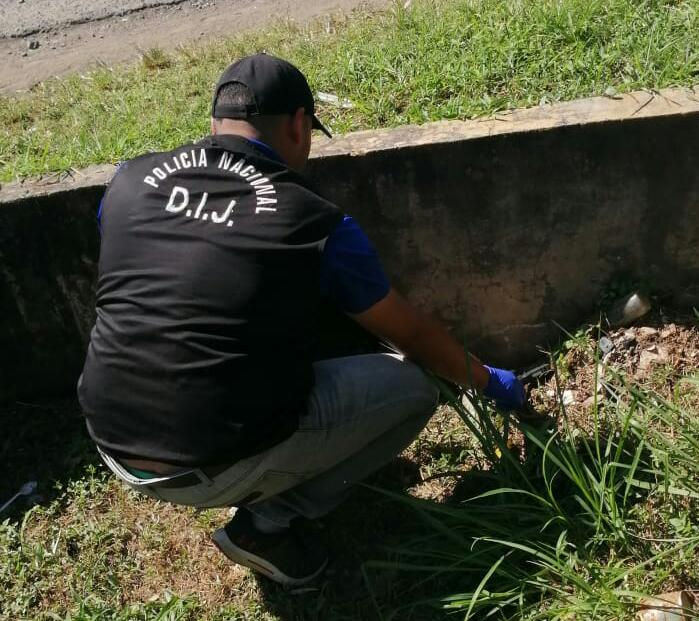 Mediante labores de investigación próximo al Mercadito UDI, Las unidades policiales de la Subdirección de Investigación Judicial, logran ubicar un arma de fuego en una alcantarilla que se mantiene en la parte posterior de la empresa Mitsubishi.